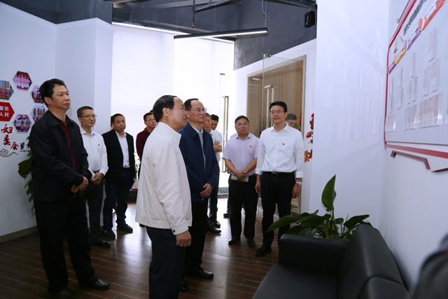 ——記江門市委書記林應(yīng)武到我司調(diào)研黨建工作2019年5月9日上午,江門市委書記、市人大常委會主任林應(yīng)武到我司調(diào)研基層黨建工作。 林應(yīng)武書記來到我司剛剛建成投入使用的黨群活動中心,只見中心內(nèi)黨委辦公室、黨群活動室、紅色書屋及黨員會議室等設(shè)施一應(yīng)俱全,而且組織架構(gòu)完善,人員配備到位,黨建工作開展得有聲有色,有效促進了公司發(fā)展。 在聽取了我司黨建引領(lǐng)視頻片匯報和與我司領(lǐng)導(dǎo)們互動交