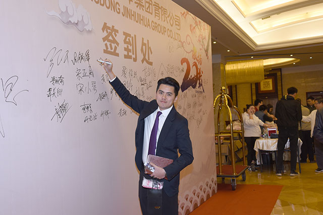 ----記廣東金輝華集團2018年度總結(jié)大會暨頒獎典禮 景象升平開泰運,金豬如意獲豐財, 1月26日,“激揚20載”—— 廣東金輝華集團2018年年終總結(jié)大會在開平市假日酒店隆重舉行,集團領(lǐng)導(dǎo)、區(qū)域公司、分公司負責(zé)人、項目負責(zé)人及全體員工出席了會議,大家歡聚一堂,共商大計,并共同回顧集團2018年走過的路程,展望2019年的奮斗目標(biāo),團結(jié)一致,斗志昂揚,信心百倍,!一踏進大廳,迎面的簽到墻溫馨動人