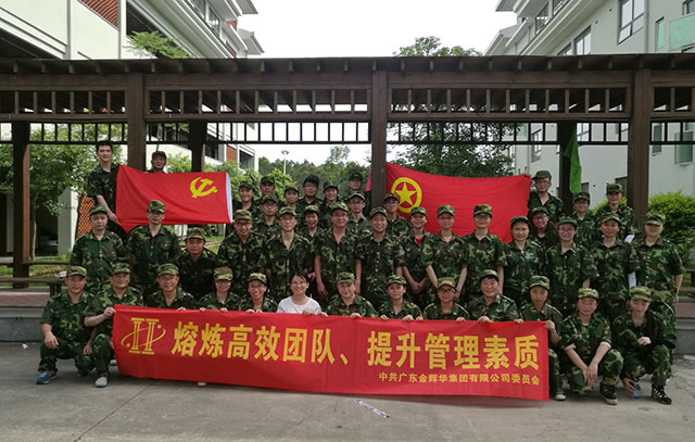 ——記廣東金輝華集團有限公司慶建黨節活動為紀念中國共產黨建黨96周年,深入學習貫徹黨的十八大、十八屆四中全會精神,和習近平總書記的重要批示的精神實質,把握好“四個堅持、三個支撐、兩個走在前列”的要求。公司黨委決定于7月1日建黨節當天,帶領公司工會、團委、女職委,在開平市國防教育基地(達維生態園)開展紀念建黨節的拓展活動。 合照上午,同志們到達活動場地后,先參觀開平市國防教育基地。通過參觀基地,讓