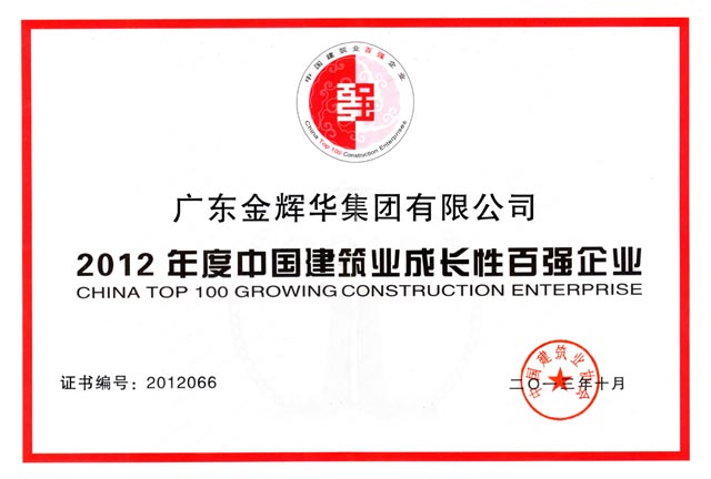 我集團公司榮獲“2012年度中國建筑業成長性百強企業”稱號