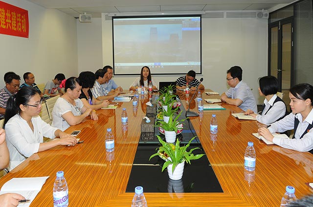 ——記廣東金輝華集團有限公司廣州黨支部與中國銀行廣州白云支行營業部黨支部黨建共建座談會 為了加強黨建建設,創新模式,加深黨建工作活力,深化共建活動,8月3日上午,我司廣州黨支部與中國銀行廣州白云支行營業部黨支部進行了“黨建相連,銀企相牽黨建共建座談會”。中國銀行廣州白云支行營業部總經理曾慶、副總經理郭志毅及其支部委員,我司黨委書記張解矛、工會主席陳維民、副主席高迎春、黨委組織委員李慧娟、黨委委員、