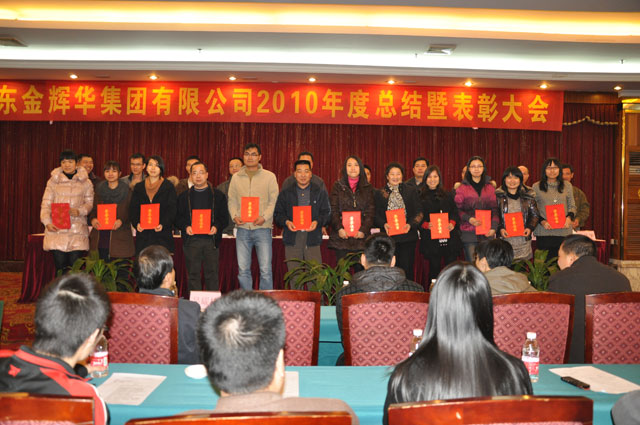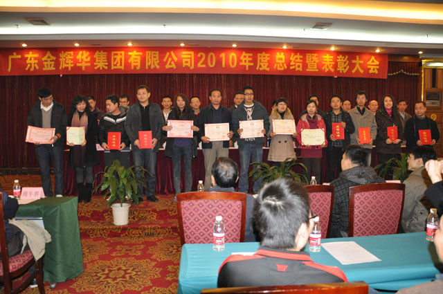 總結(jié)大會由集團(tuán)副總裁陳維民主持。會上,集團(tuán)董事長李甫發(fā)表新年致辭,總裁張國球作了《金輝華,滿懷豪情再出發(fā)》的2010年終總結(jié)及2011年工作計(jì)劃匯報(bào)講話,重點(diǎn)對企業(yè)申報(bào)特級、強(qiáng)化團(tuán)隊(duì)建設(shè)、進(jìn)一步明晰、健全和完善業(yè)務(wù)工作流程和抓緊科研項(xiàng)目實(shí)施,對2011年生產(chǎn)經(jīng)營工作進(jìn)行了安排和部署。黨委書記張解矛和開平國泰康庭置業(yè)有限公司總經(jīng)理周雪峰分別作了工作發(fā)言。最后,開平市住房和城鄉(xiāng)建設(shè)局局長吳進(jìn)進(jìn)對金輝華集團(tuán)一年來的工作作了肯定、贊揚(yáng)和勉勵,并祝金輝華集團(tuán)在新的一年團(tuán)結(jié)一致,揚(yáng)起創(chuàng)新的風(fēng)帆,在和諧發(fā)展的同時(shí),2011年勝利沖刺特級資質(zhì)企業(yè)。
