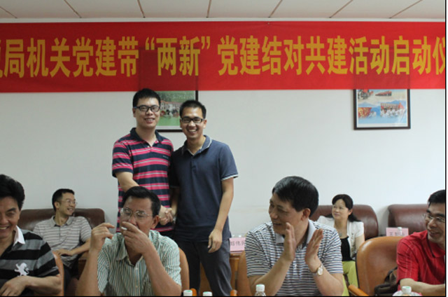 啟動儀式上,首先江門市國稅局的人員參觀了我集團的黨工青婦活動室、榮譽室。座談會上,雙方互相介紹了各自出席此次儀式的人員,后共建雙方的黨委分別對各自的黨委概況進行了介紹,使共建雙方更清楚地了解對方。儀式上,江門市國稅局機黨委向我集團黨委贈送了有關(guān)黨建工作的書籍,如十七大會議精神理解等。為切實實現(xiàn)共建目標(biāo),雙方根據(jù)各自黨支部的實際情況實現(xiàn)了江門市國稅局機關(guān)黨委各支部與我集團黨委各支部的共建結(jié)對,共同明確了通過結(jié)對共建活動目標(biāo):爭創(chuàng)全省乃至全國的‘兩新”組織黨建工作示范點。開平市委組織部劉威龍副部長在啟動儀式上,對“關(guān)于開展機關(guān)黨建帶‘兩新’黨建結(jié)對共建活動”的文件精神進行了解釋,并表示這是當(dāng)前黨建的重要工作。長沙街道辦事處黨工委委員陳國強主任在啟動儀式上表示:將盡全力支持江門國稅局的“機關(guān)黨建帶‘兩新’黨建”的結(jié)對共建活動。