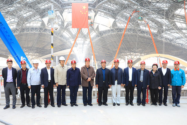 調研期間召開了座談會,聽取了北京城建集團關于新機場航站樓工程總承包項目的匯報,觀看了“踐行五大理論”世紀工程宣傳片,并就新機場項目施工技術、質量、安全、進度等進行了交流。曹玉書會長代表調研組對北京城建集團在新機場建設中取得的階段性成績給予了肯定,對企業加強質量建設,提升工程質量水平提出了具體要求。