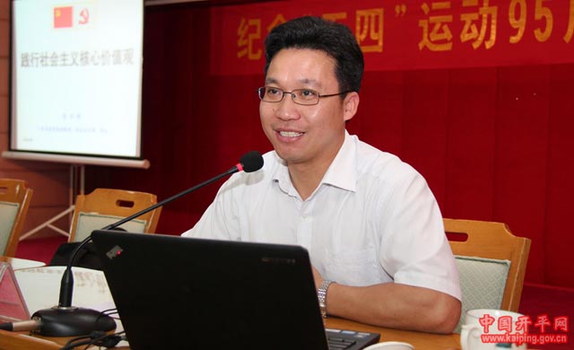 4月30日下午,開平市召開紀念五四運動95周年暨社會主義核心價值觀專題報告會,加強社會主義核心價值觀教育,激發(fā)全市廣大團員青年繼承弘揚“五四”精神。市委常委、市委統(tǒng)戰(zhàn)部部長顏海娜出席會議并為獲獎單位和個人頒獎。